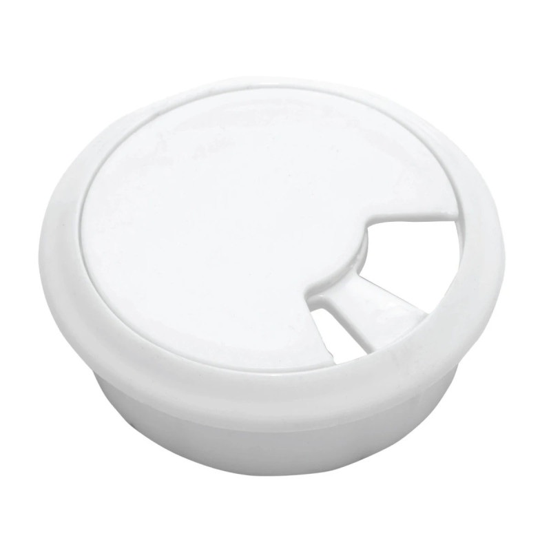 Trecerea de cablu rotundă, albă, permite organizarea eficientă a cablurilor, prevenind uzura acestora. Designul său simplu și elegant o face potrivită pentru orice tip de decor.